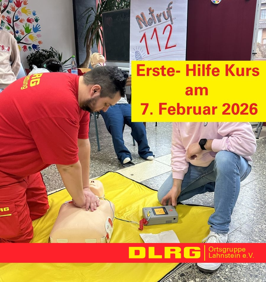 Am 07. Februar 2026 bieten wir einen Erste-Hilfe-Kurs an. In diesem Kurs werden wichtige Grundlagen und praktische Maßnahmen der Ersten Hilfe vermittelt, die im Notfall Leben retten können.